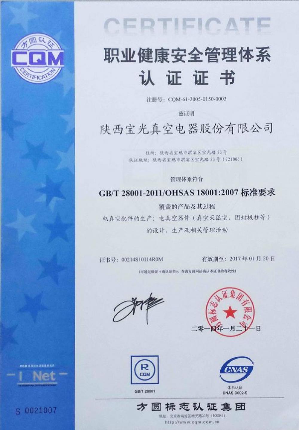 2014年通過OHSAS 18001:2007職業健康安全管理體系認證