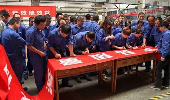職工代表王道斌現場帶領大家高聲做出了“產品質量是我們個人的尊嚴”鄭重承諾。