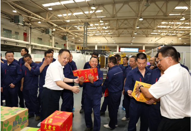 靳海斌一行來公司慰問職工“送清涼”,帶來了省國防工會的關懷和厚愛,一聲聲親切貼心的問候,一句句熱情洋溢的話語,一份份貼心的清涼用品,讓在場的一線職工深切感受到上級工會組織的關心與問候,讓職工們感受到了“娘家人”的溫暖。