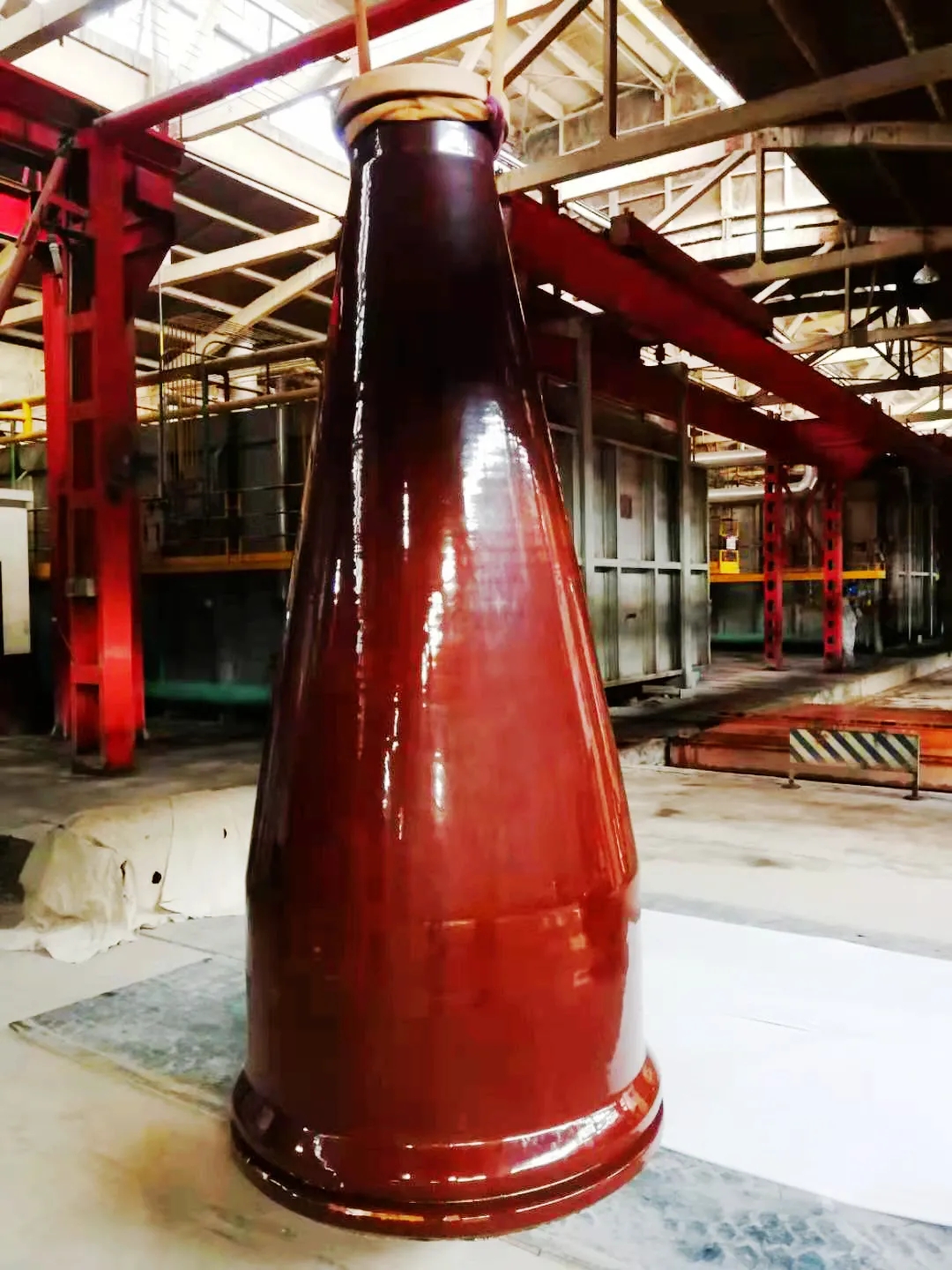 本次研制的2000kV變壓器電容套管將應(yīng)用于目前世界上電壓等級最高的試驗變壓器,對1100kV特高壓電氣設(shè)備產(chǎn)品進行各項嚴格的電氣性能試驗。這種試驗方法屬于國內(nèi)首次,相比常規(guī)產(chǎn)品,試驗要求及質(zhì)量控制更加苛刻。同時,該產(chǎn)品為超大尺寸、薄壁、錐度大、易變形的炮彈式結(jié)構(gòu),僅毛坯重量就接近8噸,整個制造過程采用濕法產(chǎn)線生產(chǎn),因突破了很多設(shè)備的極限,成型極其困難。在毛坯擠制、轉(zhuǎn)運、陰干、修坯、干燥、上釉、燒成、切割研磨各工序,均存在不同程度困難與挑戰(zhàn)。
