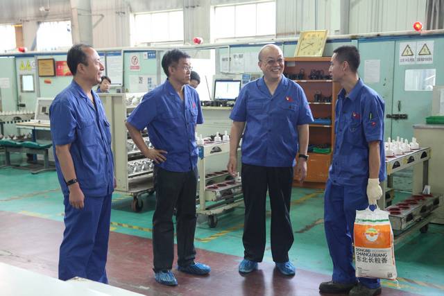 另訊:7月31上午,寶光集團黨委雒濤書記帶隊,副總經理岳永學、黨群工作部部長卓元周等一行,分別前往A產品事業部、C產品事業部、固封極柱事業部、零件事業部、集熱管事業部、陶瓷科技公司共6個生產單元,慰問了奮戰在生產經營一線的復轉退軍人代表,并為他們送去了大米、食用油等慰問品。