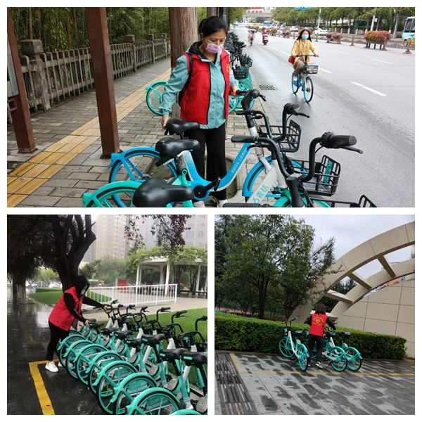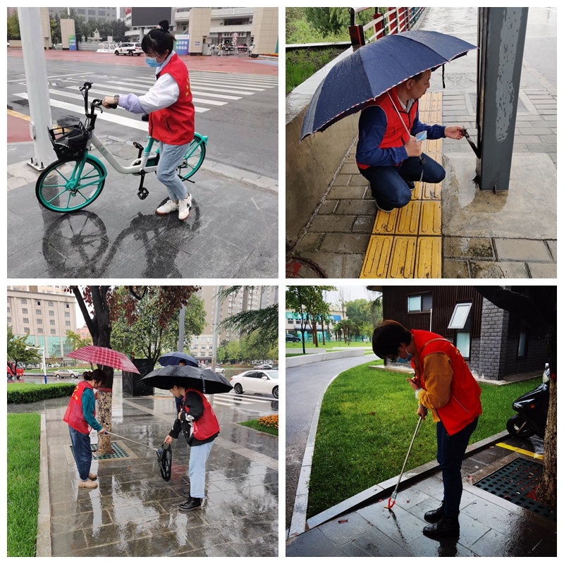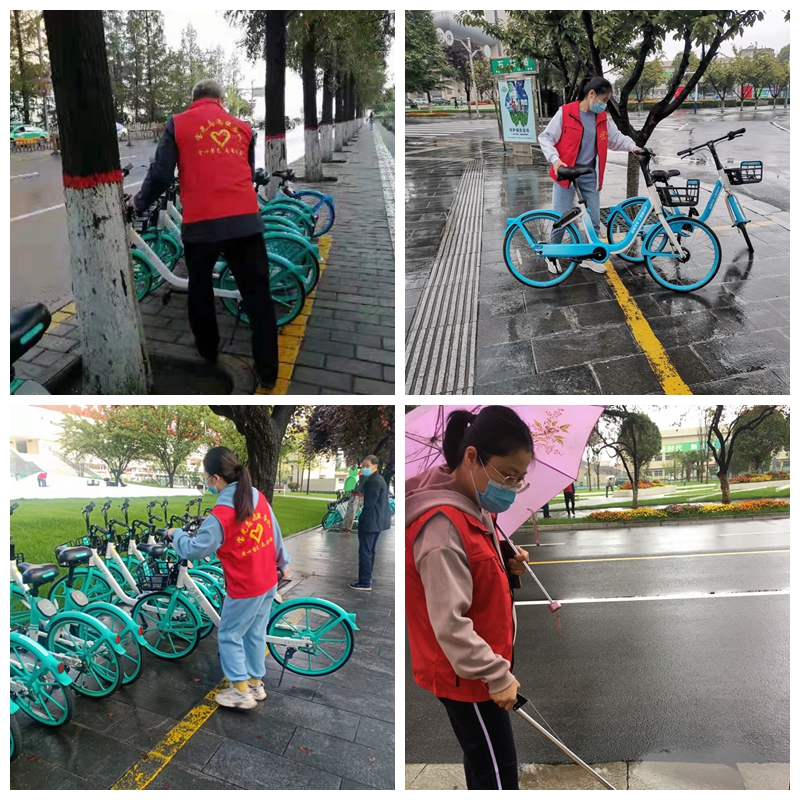 在近日連續強降雨的天氣里,志愿者們風雨無阻每天早上堅持7:30按時到崗開展志愿服務活動。他們身穿紅馬甲,手拿垃圾夾,冒雨沿著金渭大橋南至寶光路轉盤巡回開展志愿活動,認真地清理路面上的碎紙屑、飲料罐、煙頭等垃圾。同時將共享單車擺放在規定的區域內,保持整齊美觀和人行道路的通暢。