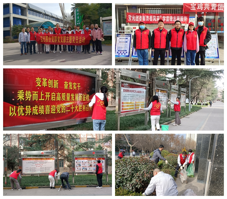3 月5日是第 59 個“學雷鋒紀念日”,也是第23個中國青年志愿者服務日。寶光股份黨委以“3.5”學雷鋒紀念日為契機,組織各黨支部開展了“弘揚雷鋒精神 共創美好環境”、“黨建引領學雷鋒 黨員行動踐初心”等多種形式的主題黨日活動。