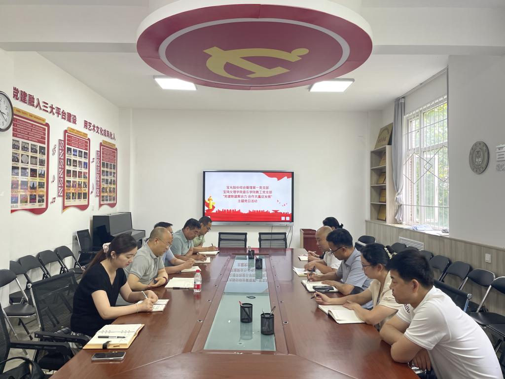 為深入開展學習貫徹習近平新時代中國特色社會主義思想主題教育,熱烈慶祝中國共產黨成立103周年,7月2日,綜合管理第一黨支部與寶雞文理學院音樂學院教工黨支部開展以“黨建聯建聚合力,合作共贏促發展”黨建聯建活動,共慶黨的生日。